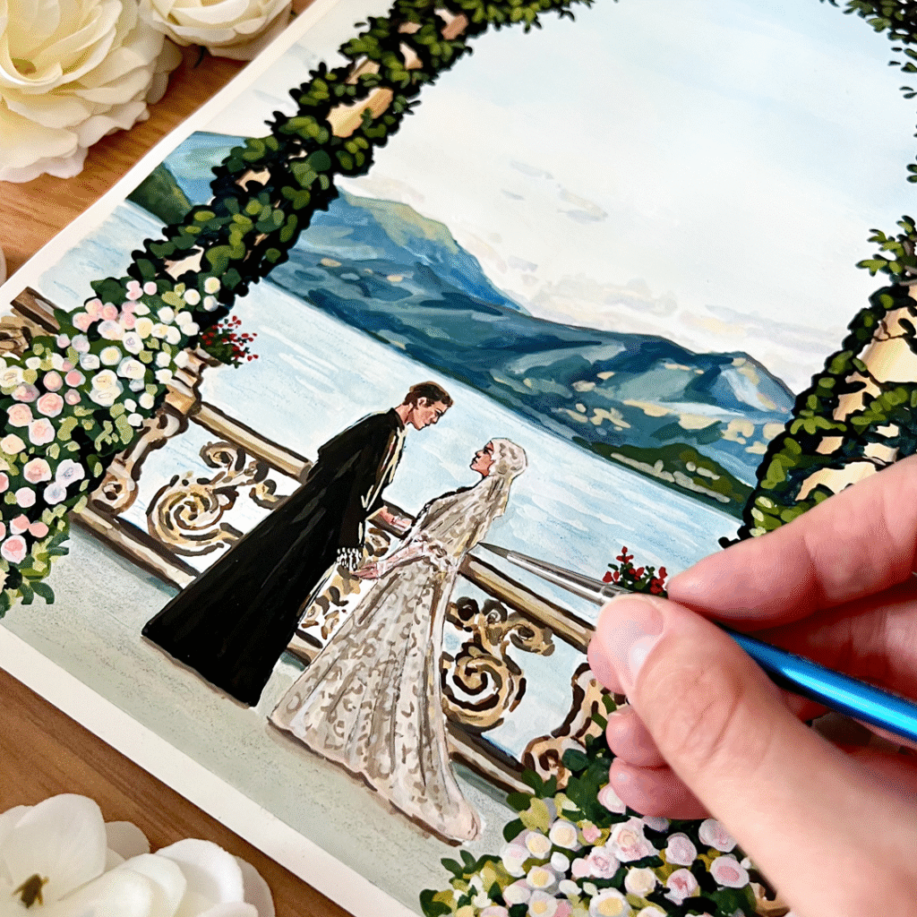 Au-delà du mariage, je réalise aussi des illustrations personnalisées, maisons de famille, paysages, souvenirs personnels ou projets créatifs sur demande.