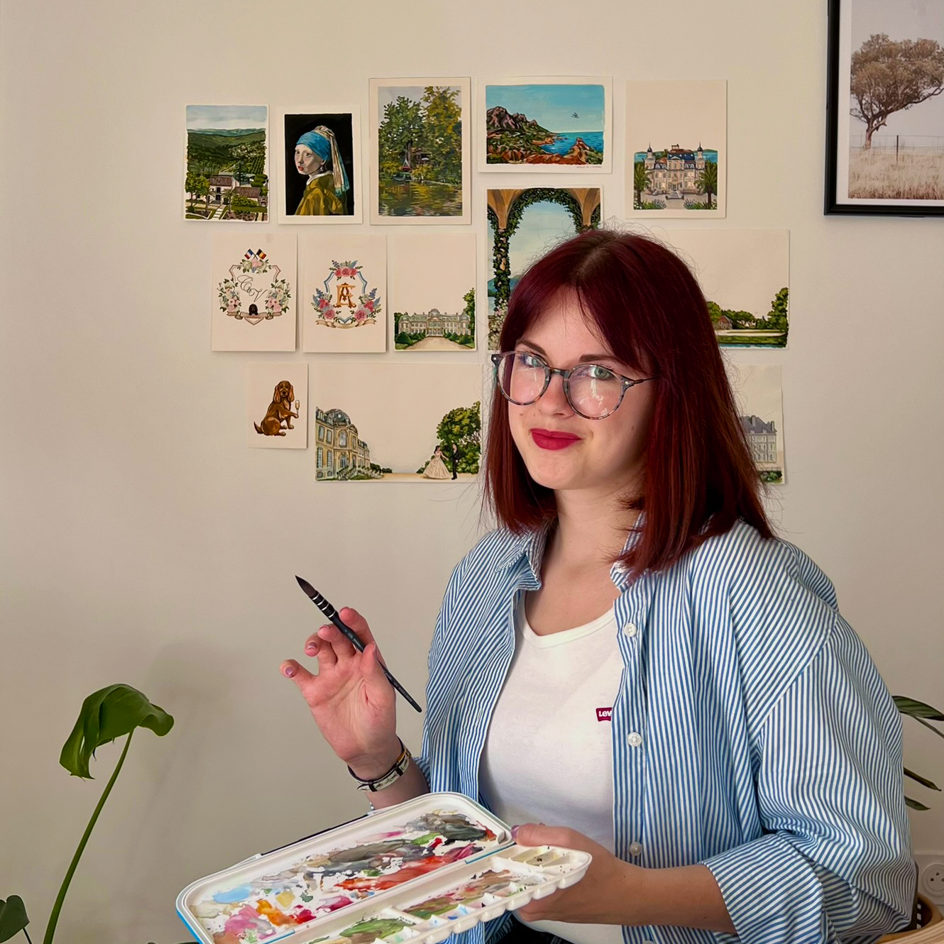 Je m’appelle Léa, illustratrice indépendante, et ce que j’aime par dessus tout c’est raconter des histoires à l’aide de ma peinture et de mes crayons. Aujourd’hui, je mets ma créativité au service des futurs mariés à la recherche de faire-part originaux, qui souhaitent annoncer leur mariage avec authenticité.